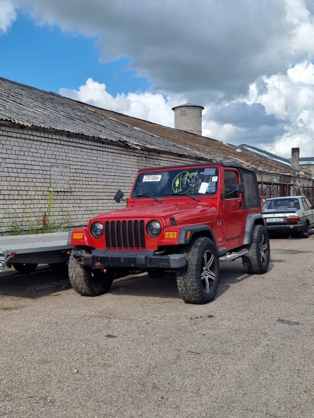 Jeep Wrangler ir Latvijā , motors strādā ļoti klusi un vienmērīgi . Ir vizuāli defekti . interesē maiņa ar piemaksu no Jūsu puses. .